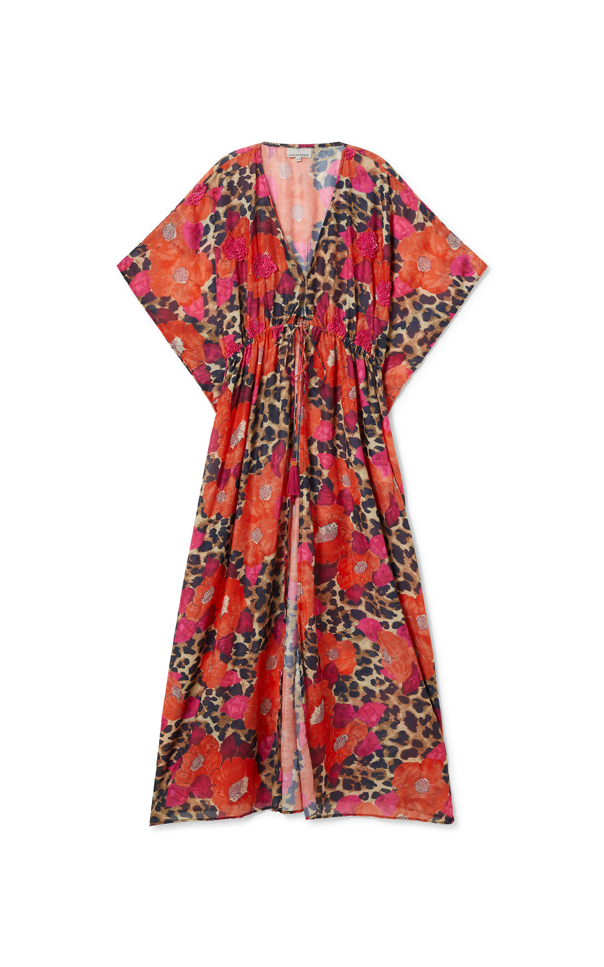 Long dress printed in pink and lilac tones
