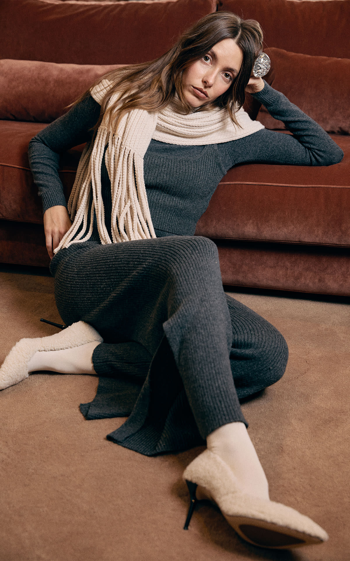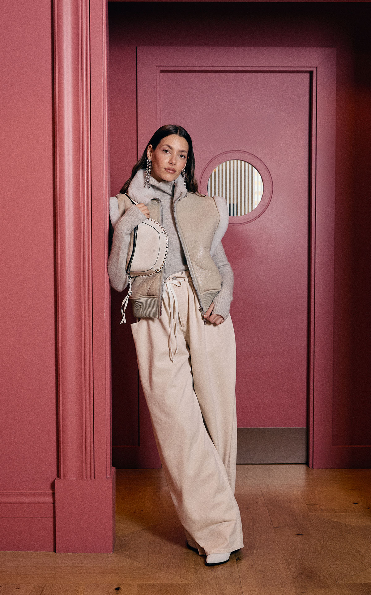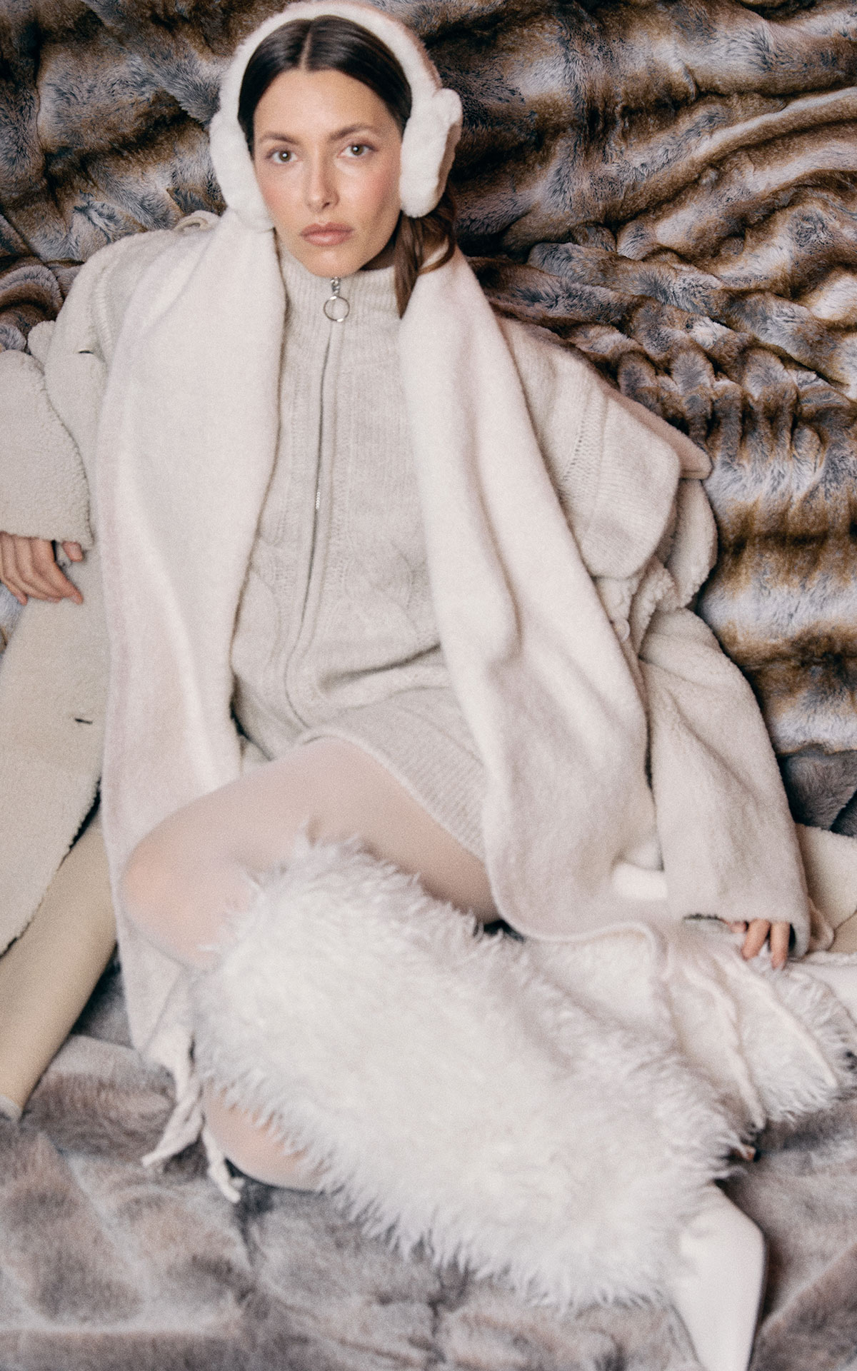 Funcionalidad técnica con espíritu relajado. Los looks après-ski evolucionan hacia una estética más urbana sin perder confort. Prendas de lana, tejidos envolventes y referencias alpinas en tonos suaves. El protagonista de 2026: las botas Yeti de pelo